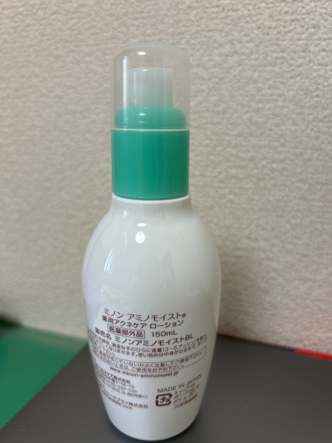 1 | 第一三共ヘルスケア MINON ミノンアミノモイスト|薬用アクネケア ローション | ![]() | 4.60 | 11位 | デリケートな肌でも使いやすいうえに、保湿効果に期待大 | 5.00 | 5.00 | 4.50 | 3.69 | 3.88 | 5.00 | 4.17 | +40.68 | 150mL | 医薬部外品 | 濃グリセリン、BG、1,3-プロパンジオール、ヒアルロン酸Na-2 | アスパラギン酸、アルギニン、アラニン、トレオニン、L-バリン、ヒスチジン、プロリン、L-ロイシン | 天然ビタミンE | ε-アミノカプロン酸(有効成分)、グリチルリチン酸2K(有効成分) | 10代、20代、30代、40代 | 乾燥肌、敏感肌 | しっとり | プチプラ | |||||