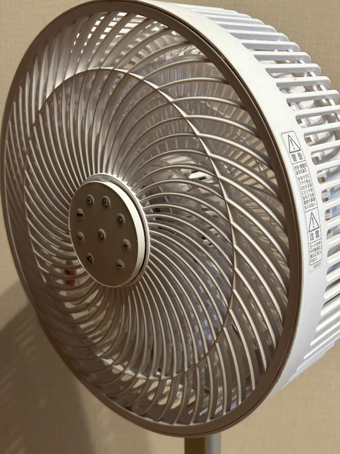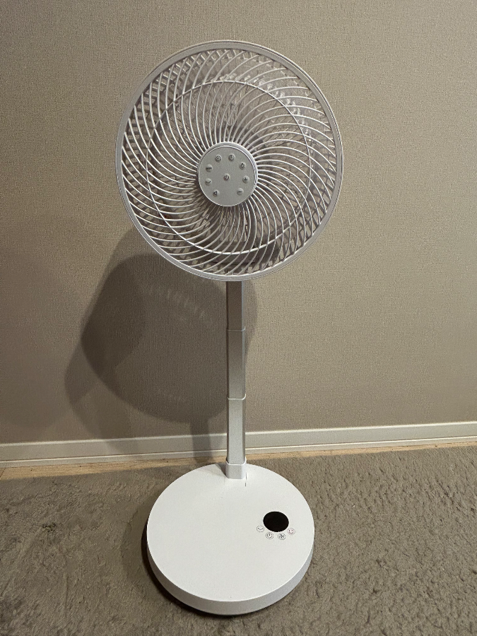 風の心地よさと静音性が優秀だった1台です。風当たりがやさしく、体全体を包むような自然な風が送られる点が好印象でした。長時間あたっても快適に過ごしやすく、9段階の細かな風量調節も可能です。また、弱モードでは30dBを下回り、ほとんど運転音を感じない静かさ。夜間や作業中の使用にも適しているといえます。段階調節は強弱のボタン操作式で、高さ調整や左右の首振り、リモコン操作にも対応しており、日常使いの利便性も十分です。