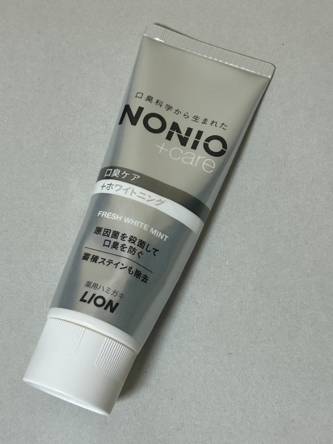 「NONIO プラス ホワイトニング ハミガキ」は、ライオンが提供するオーラルケア製品です。口臭ケアとホワイトニングのダブル機能を特徴とし、フレッシュホワイトミントのフレーバーが楽しめます。医薬部外品に分類され、ドラッグストアで気軽に購入できます。