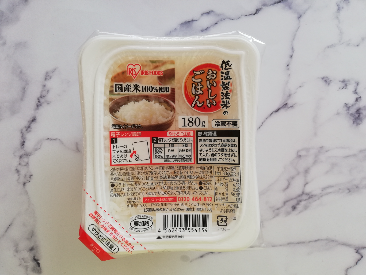 10 | アイリスフーズ 低温製法米のおいしいごはん | ![]() | 4.36 | 手軽に食べたい人におすすめ。噛み応えがあり満足感もある | 4.17 | 5.00 | 4.75 | 製造日から13か月 | 電子レンジ、湯煎 | 500-600W:1分30秒 | 150g | 日本(都道府県名の記載なし) | 不明 | 216kcal | 直射日光を避け常温で保存 | 容器包装詰加圧加熱殺菌米飯 | たんぱく質:3.5g、炭水化物:49.1g、脂質:0.7g、食塩相当量:0g |