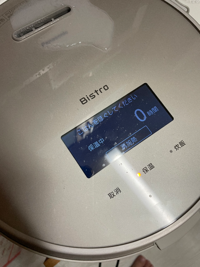 保温したごはんは、炊きたてごはんよりもパサついた箇所が増え、飲み込んだあとも喉にお米の粒が残っているかのように感じるほどでした。