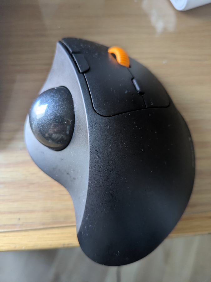 トラックボールは、ボールの設置面である支持球に汚れがたまります。掃除をしないと「ザラッ」と引っかかる感覚が生じるので、週に1〜2回程度でよいので、定期的に掃除をしましょう。