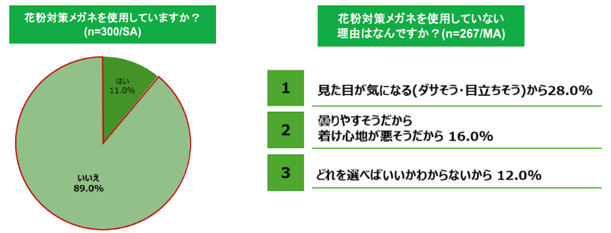 ■花粉対策メガネの未使用率は約9割。理由は「見た目」や「使いにくそう」が上位に。