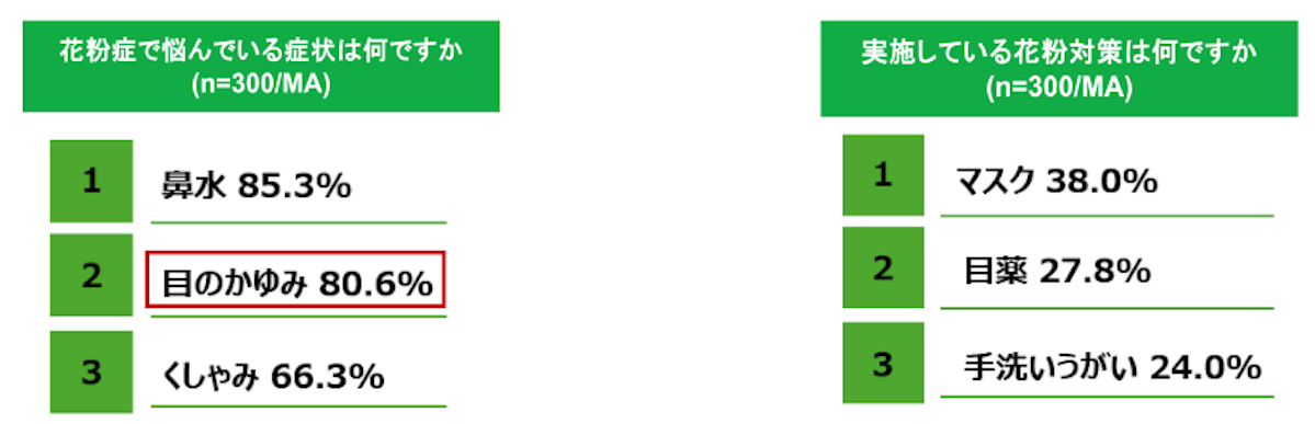 ■花粉症の悩みとして8割以上が「目のかゆみ」を訴える結果に。