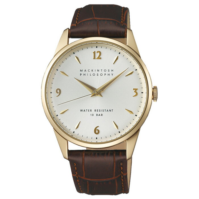 マッキントッシュ フィロソフィーFCZK99821,000円小林亮一カーブしたボンベダイアルを採用するなど英国のヴィンテージウォッチをモチーフとしたクラシカルなデザインがポイントの1本。ブラウンのクロコ型押しが施されたレザーベルトとシャンパンゴールドカラーのケースが融合する上質さは、まさに大人のムード。ここぞというときの1本にもなるはずです。10気圧防水・SS・ケース径38mm・クオーツ