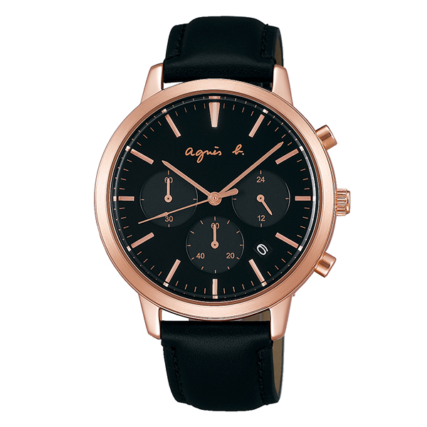 アニエス ベーFCRT96627,000円小林亮一アニエス ベーのロングセラーモデル「SAM」をベースに、モダンなアップデートが施されたクロノグラフモデル。豪華な印象のあるカーフレザーのベルトにピンクゴールドのケース、そしてブラックのダイヤルがあいまった美しいコンビネーションが魅力です。10気圧防水・SS・ケース径40mm・クオーツ