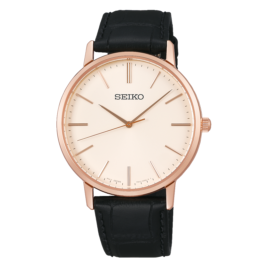 セイコーセレクションゴールドフェザー 復刻モデル SCXP07622,000円小林亮一ピンクゴールドのSSケースにデュアルカーブガラスを採用した薄型モデルは柔らかなつけ心地が魅力。文字盤はシンプルな3針仕様で、大人な印象を見る者に与えてくれます。ベルトは上質なカーフレザー。クロコの型押しが施されているので豪華な雰囲気も構築できます。日常生活防水・SS・ケース径38.2mm・クオーツ