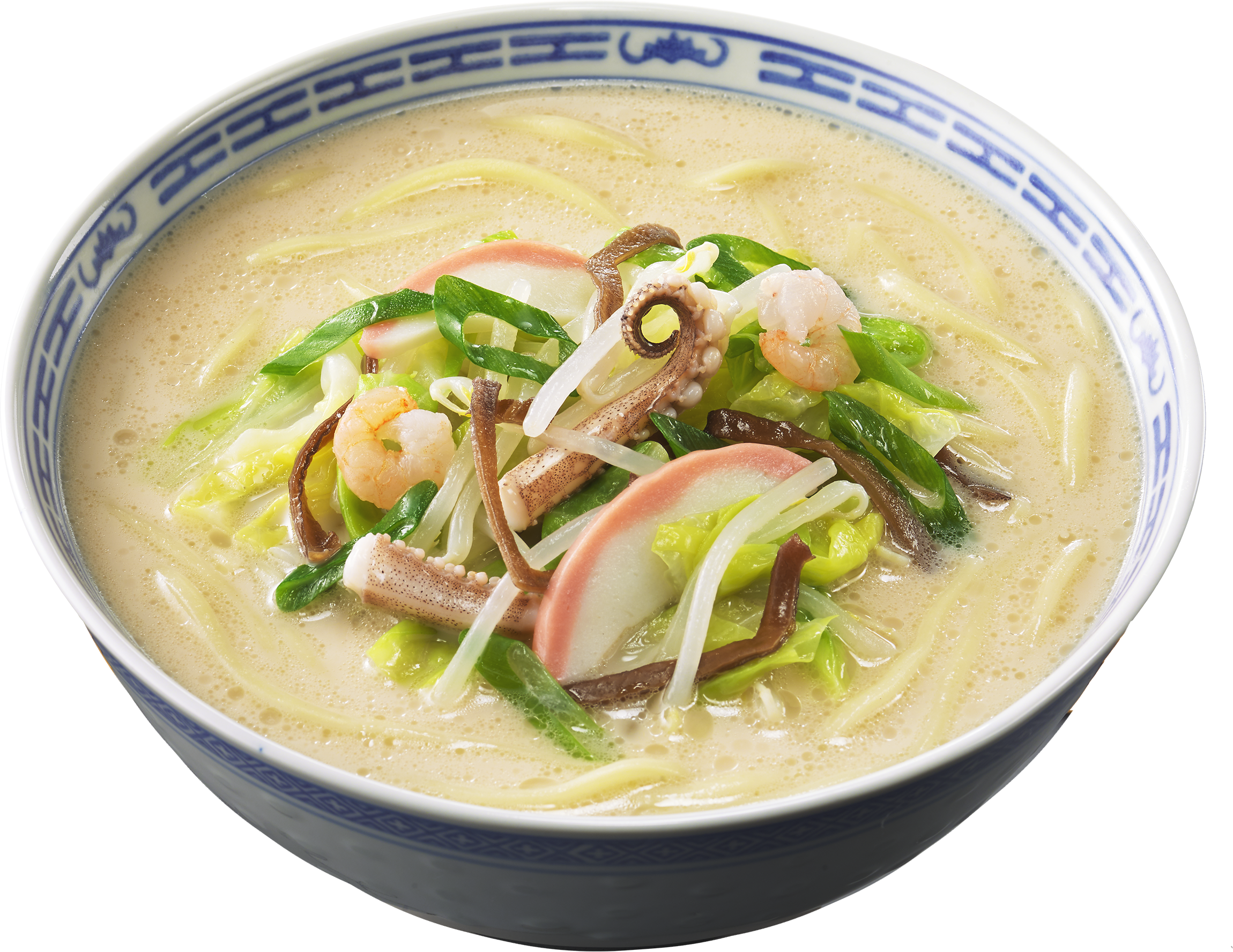 まずスープがめっちゃ美味しいです!本場長崎ちゃんぽん名店「四海樓」の監修なので、スープの濃厚さ、魚介のうまさが抜群。特にイカの濃厚なうまみを感じます。
