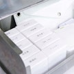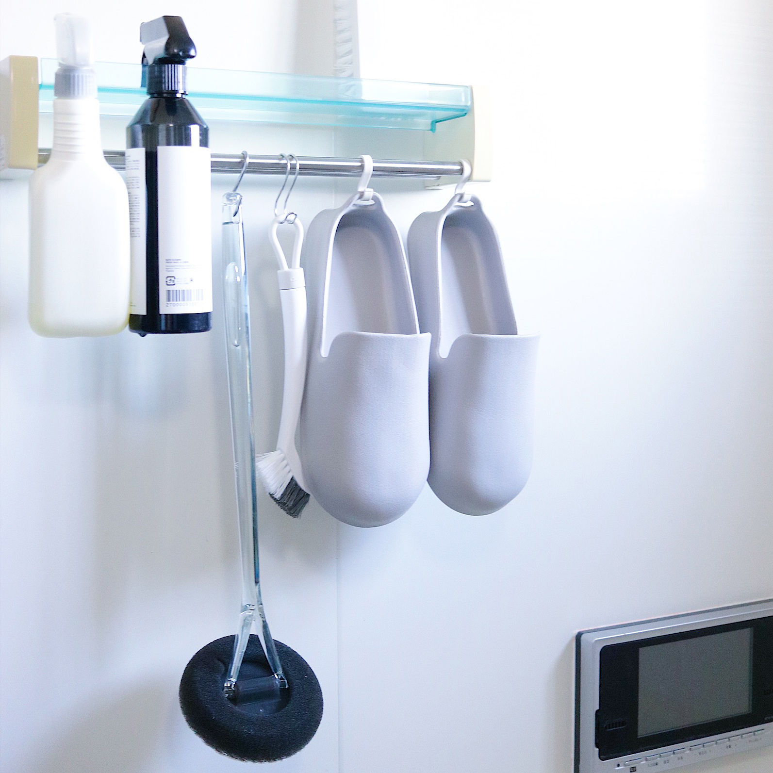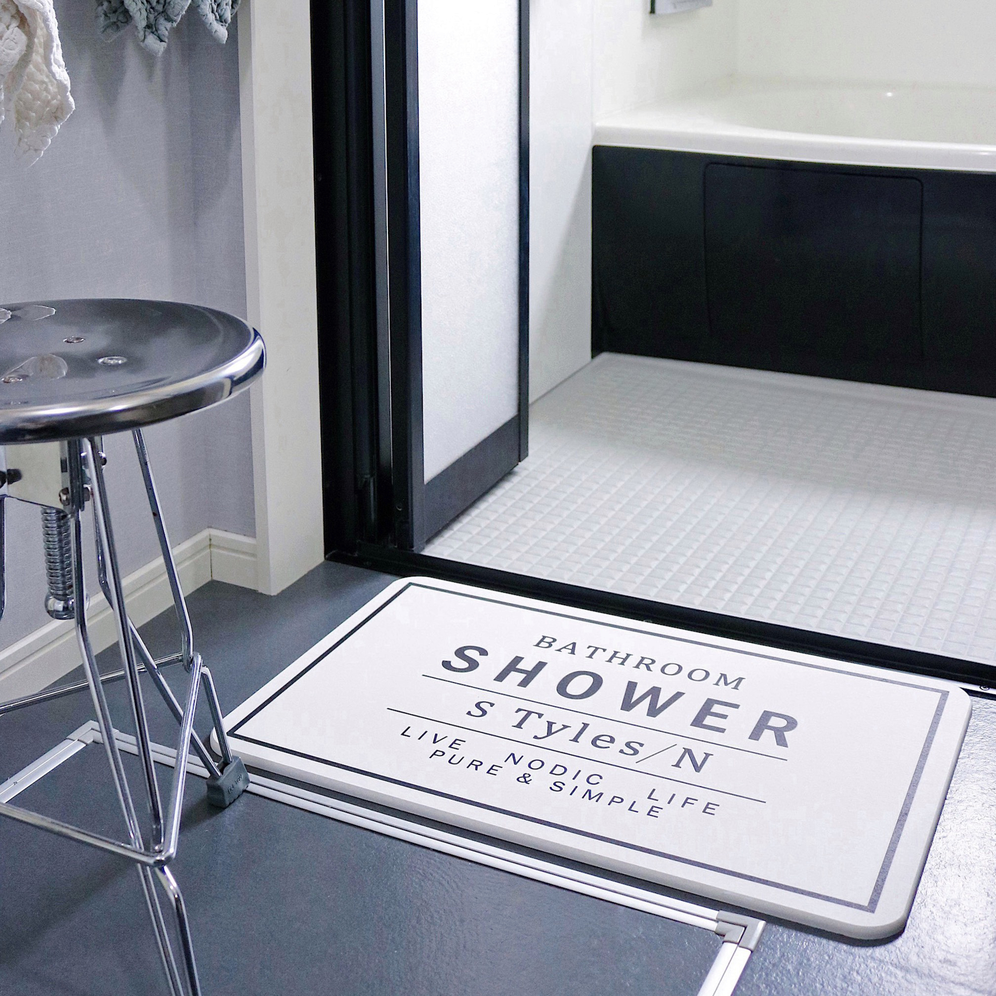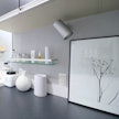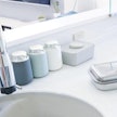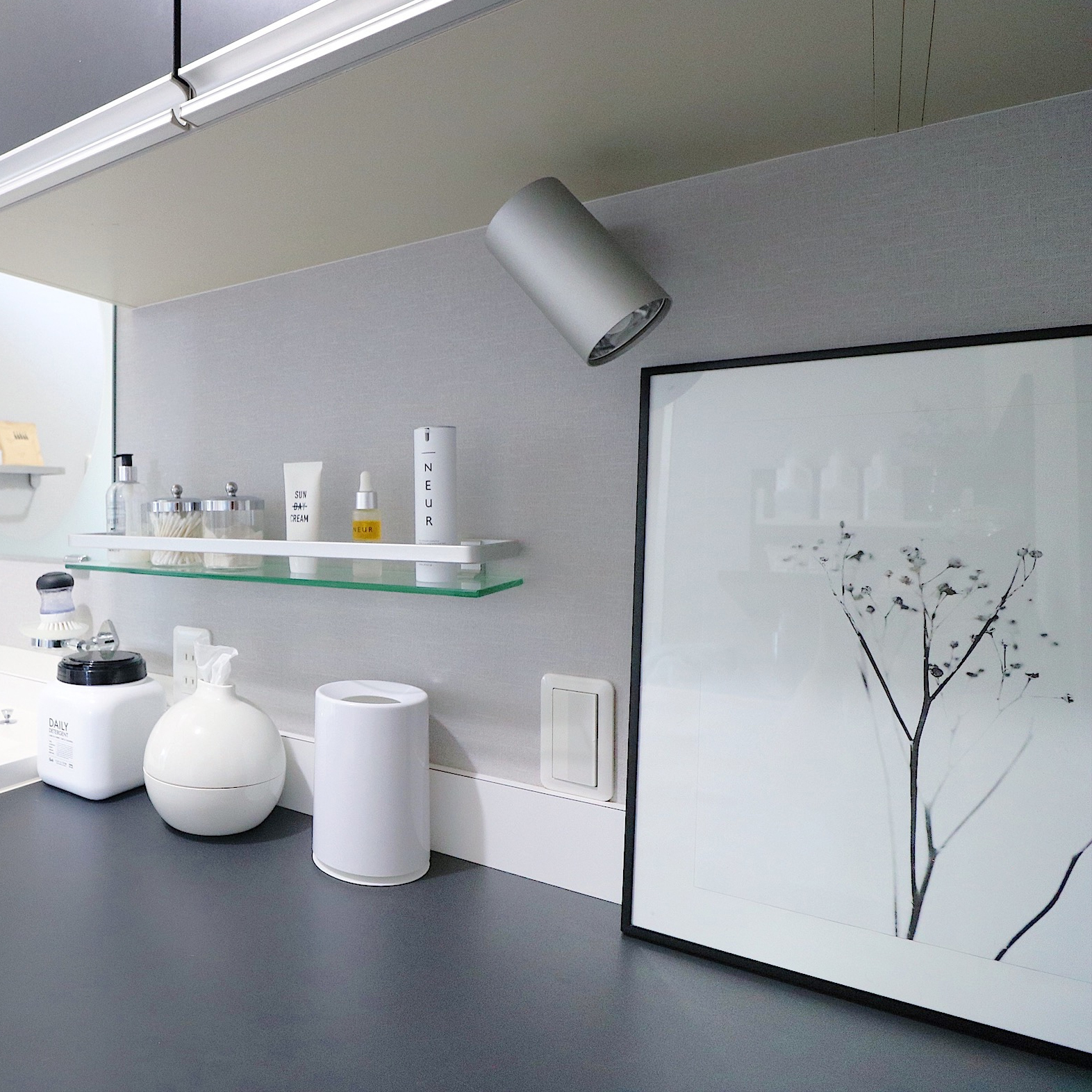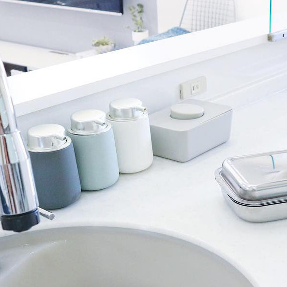 清潔感のあるマーブル柄と重厚感のあるセメント素材、本体はガラスでできているので見た目にもオシャレ度が抜群。ホワイトとガラスの組み合わせが清潔感のある空間を演出してくれます。