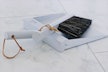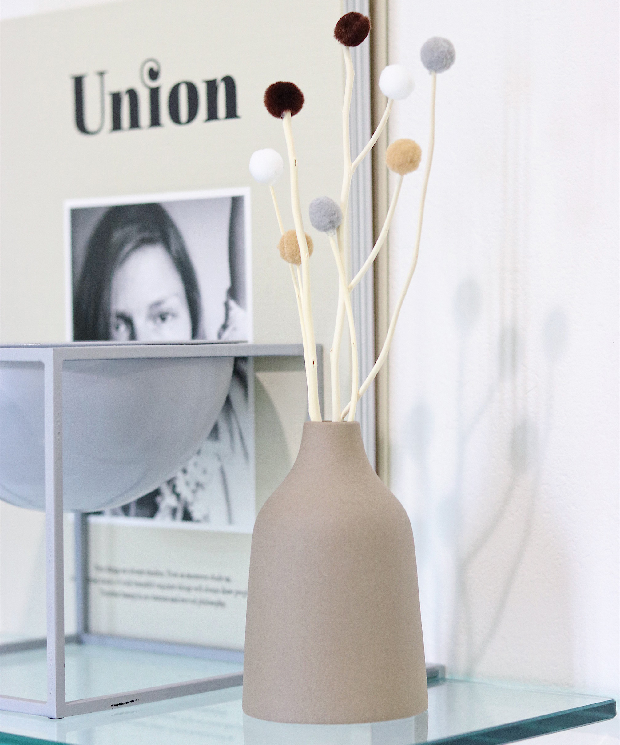 マーブル柄のセメント素材とガラスを組み合わせた存在感のあるフラワーベースです。