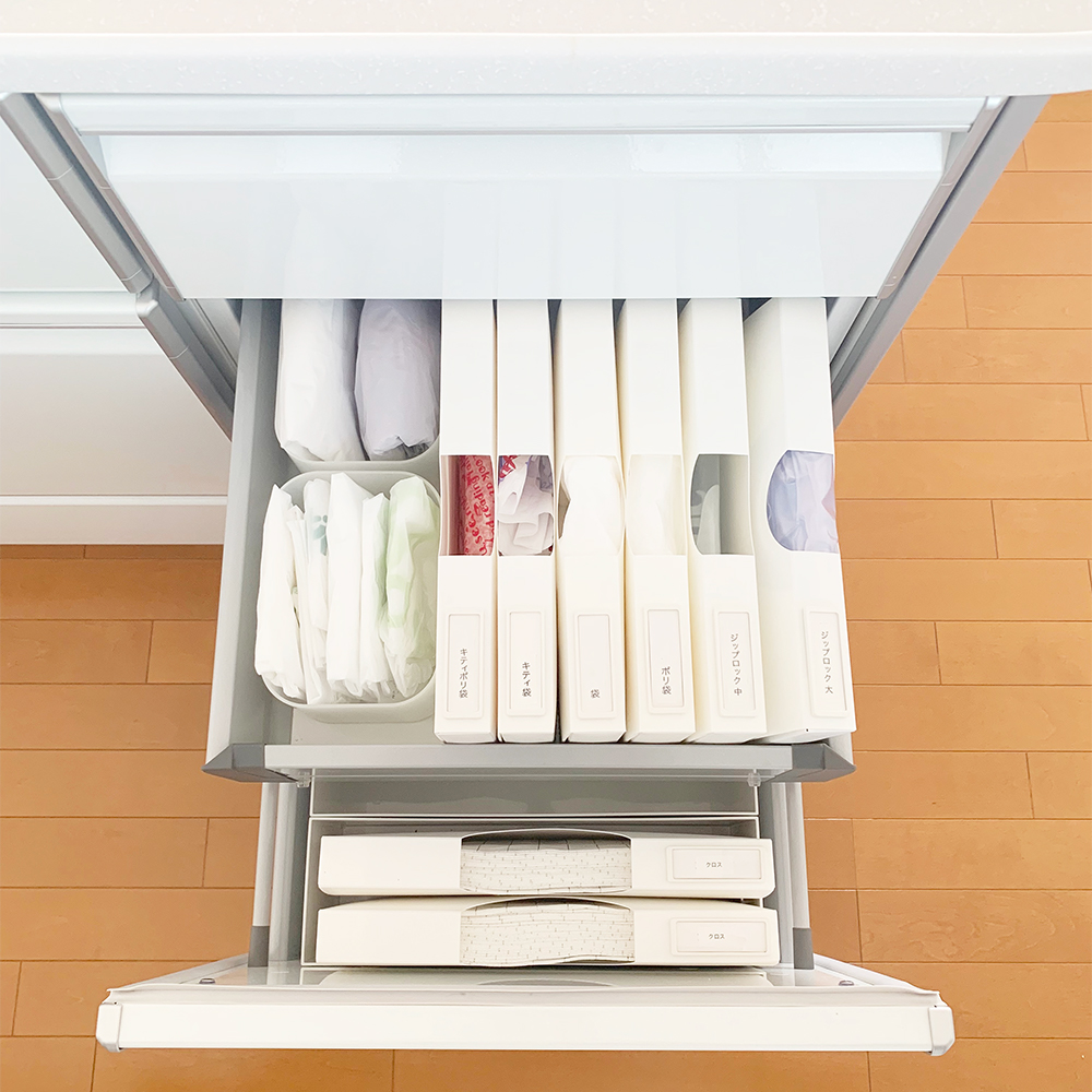 出典:item.rakuten.co.jp出典:item.rakuten.co.jp出典:item.rakuten.co.jpmon・o・toneキッチン消耗品用ケース250円蜜柑これは、細々とした袋などをコンパクトにまとめられるケース。我が家では、ジップロック・ポリ袋・レジ袋などを入れてキッチンに収納しています。立てて並べて収納すると、見た目もすっきり。ネームプレートをラベリングして、分かりやすくして保管しています。同じブランドから発売されているグラフチェックのカウンタークロスがピッタリはまるので、クロス入れにもしています。ワンサイズ大きいゴミ袋用ケースも愛用中です。100円ショップにも似たものがありますが、こちらの方が作りがしっかりしていると思いました。…もっと見る
