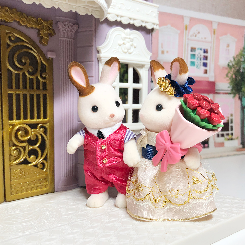出典:amazon.co.jpエポック街のすてきなカップル TF-081,640円さやぽんシルバニアタウンにみんなの憧れのカップルが登場♪ショコラウサギのお姉さんのボーイフレンド、シナモンウサギのお兄さんです。シルバニアファミリーにお兄さんが登場するのはかなり久しぶりなんです!そしてこの二人、シルバニアファミリー史上初の手つなぎ仕様なのです!!「もうカップルというだけでもキュンキュンするのに、手つなぎだなんて~!!」と目がハートになってしまいました♪付属の花束には持ちやすくするためにリボンの後ろに腕に挟めるホルダーがついています。シルバニアタウンをデートしたり、グランドハウスでデートしたり。写真映えするアイテムです。結婚式のウェルカムアイテムにもおすすめです♪私はショコラウサギのお姉さんのために2着もウエディングドレスをハンドメイドしました。ちなみに、ブティック社出版の『シルバニアファミリーの着せかえBOOK』には、カップルのウェディング衣装の作り方が載っています。そちらもおすすめの1冊です!…もっと見る