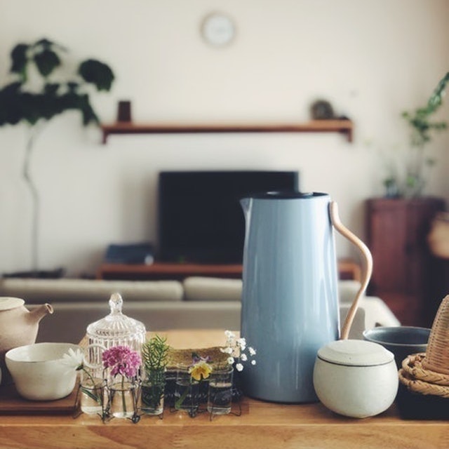 梅1kg・ 氷砂糖1kgを入れるのにちょうどいいサイズなので、私は梅シロップ作りに使っています。ほかにも、コーヒー豆やお米のストック用として、キッチンの見える所に置いています。たくさんの瓶を並べて、見せる収納にするのもステキです。