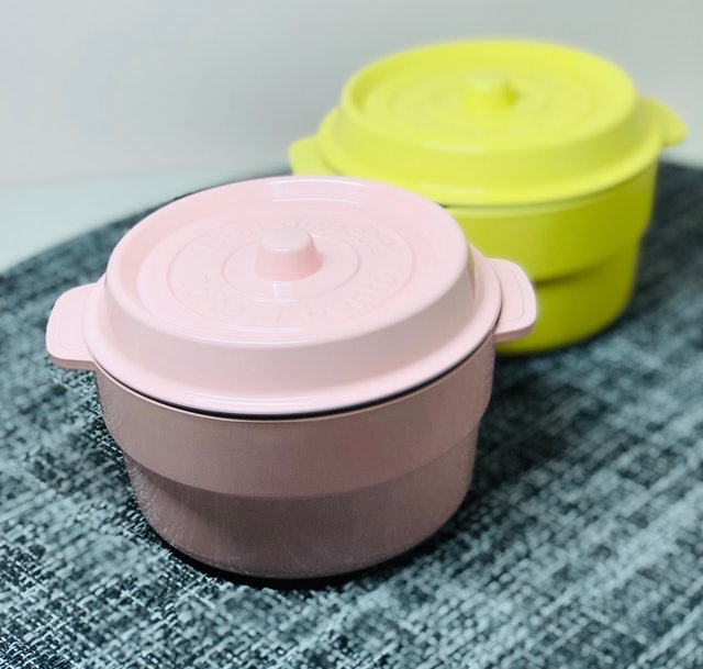 出典:amazon.co.jp竹中ココポット ラウンド ランチボックス T-764051,506円kuratabaホーロー鍋を模した、かわいらしいランチボックス。丸い形状で、中は2段になっています。曲げわっぱ同様にどんな風に詰めても見栄えよく整って見えますが、変わった詰め方も楽しめます。例えば、2段ではなく1段にして、ボリューミーな乗っけ弁当にしたり、スティック形状のパンを立てて入れてみたり。ちょっと入れ方を変えるだけで見栄えが変化し、作る方も食べる方も楽しめます。また、色合いや凹凸でデザインされているフタの文字もおしゃれで、インスタ投稿後に「どこのお弁当箱ですか?」と聞かれたことが何回もあります。