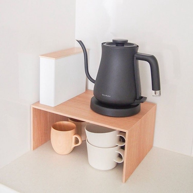 リビングや寝室、キッチンで使う小物置きや、窓際に置いて花台にするなど、家中でフレキシブルに使える折りたたみ式のラックです。