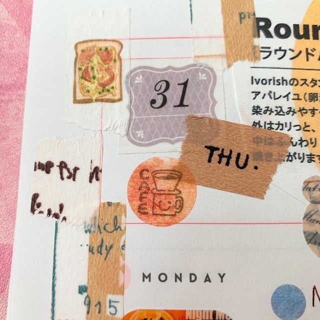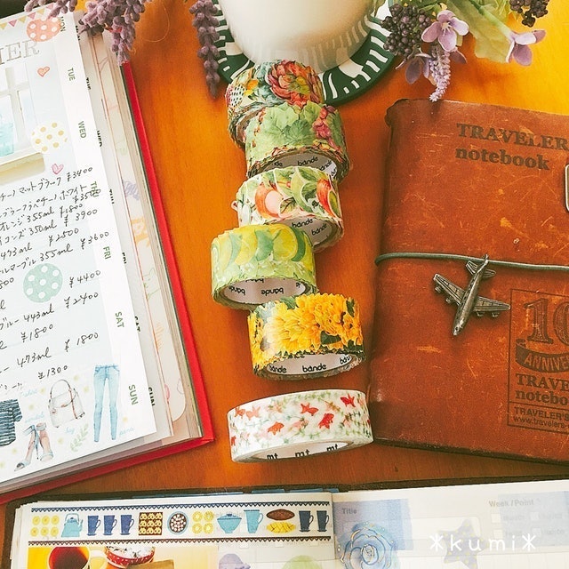 出典:bande.ne.jp出典:bande.ne.jp出典:bande.ne.jp出典:bande.ne.jpbandeMasking Roll Sticker (ガーデン)432円kumiこちらは切って使うマステではなく、ひとつずつのモチーフごとの形に切り取られているマスキングロールシールです。1枚ずつ剥がして、シールのように使えます。色鮮やかな柄が多く、特に花やフルーツをモチーフにしたものが充実しています。「藤の花」は、1枚ずつ剥がすごとに色が微妙に違っていき、並べて貼るときれいなグラデーションになっていて手帳に見事な藤棚が作れます。「Flower wreath」はお庭に咲いているかのような野花の柄で、小ぶりなのでマンスリーのページでも活躍。ときどきでてくる蝶々の柄がかわいくてお気に入りです。他にも手帳に便利な数字やアルファベット、曜日などの柄もあるので、たくさん集めていろいろな使い方が楽しめますよ。…もっと見る