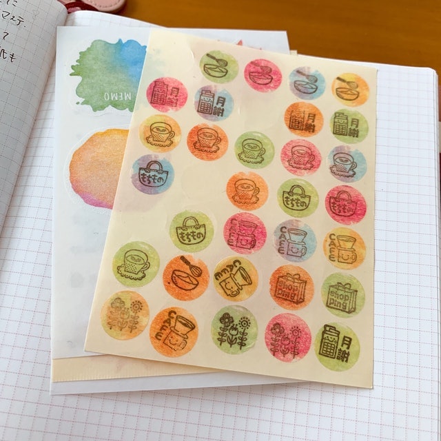 出典:item.rakuten.co.jp出典:item.rakuten.co.jpニトムズマスキング丸シール シャッフル 直径8mm345円kumiカラフルな丸型のポイントシールは昔から学校の教材などでよく使われますが、こちらはマスキング素材でできています。色合いも優しく、貼ったところが透けて見えるので、スケジュールの日付けの上に貼ったり、上から文字を書いたりできます。きれいに剥がせるので、予定が変わっても貼り直せて、To doリストのチェック代わりにもぴったりです。少し大きめのサイズならスタンプも捺せるので、私はよく使うスタンプを捺して持ち歩いています。スタンプを持ち歩くのはかさばりますが、こうしておけば必要なときにすぐ貼れて便利です。これを4隅に使ってメモを貼ってもかわいいですし、なんなら水玉模様としてただ空いているところにペタペタ貼るだけでもかわいい。絵心のある方なら、このポイントシールを使って絵を描いたりとアートとしても楽しめますし、いろいろなサイズや色を揃えると使い方も広がりますよ。…もっと見る