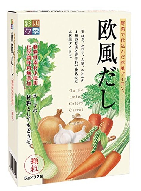 長い間お世話になっている「欧風だし」。スープのだしに、オムライスに、とにかく洋食を作るときは「欧風だし」があれば安心です。使われているのはお野菜だけなのですが、びっくりするくらい風味豊かに仕上がるんです!