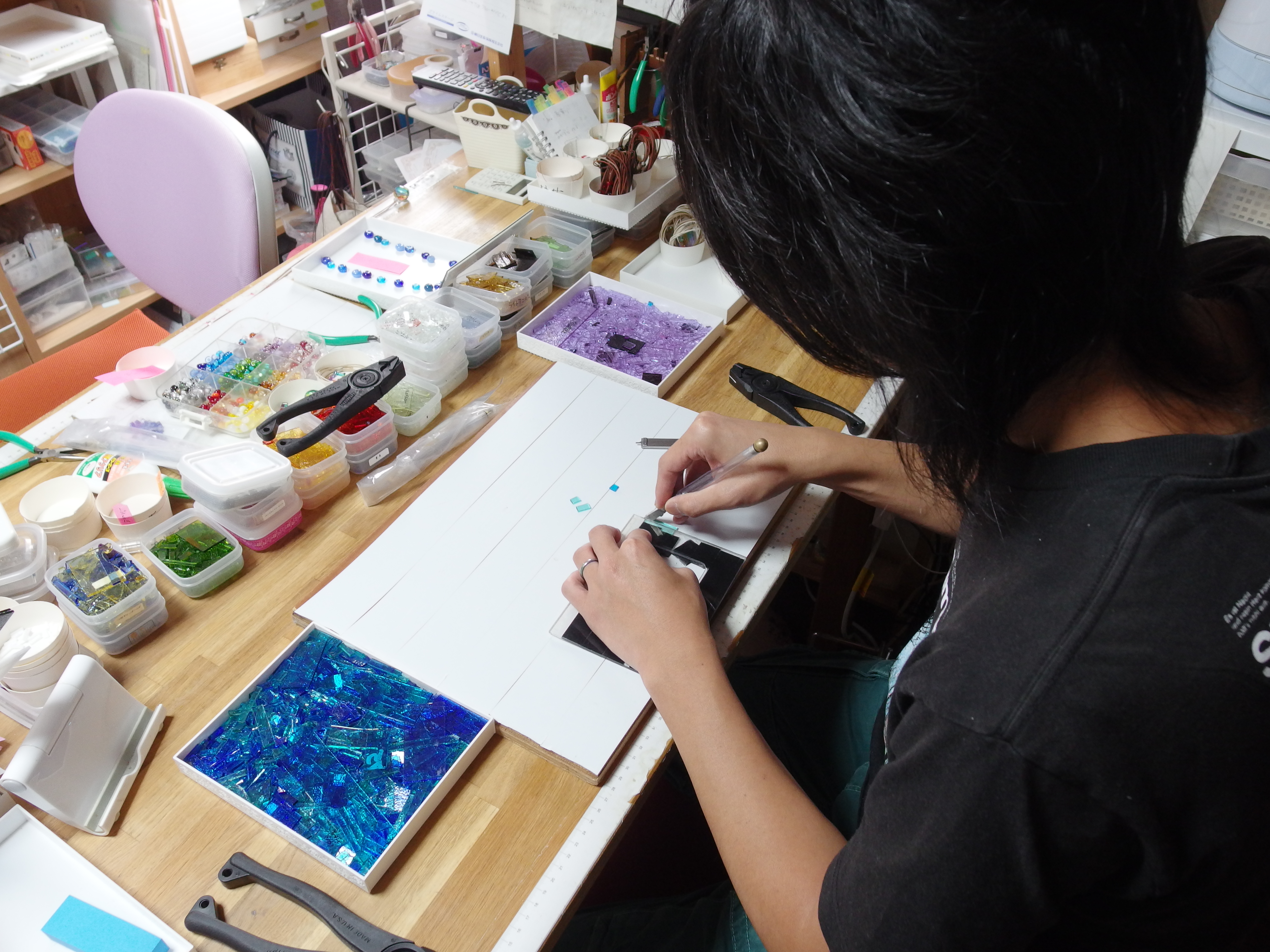 ガラスアクセサリーを製作するとき、金属パーツを一番強力に接着してくれるのがちらのボンドです。2液混合型で硬化時間が長いなど、使いづらい点はありますが、耐久性・耐水性も高く、いろんな面でとても優秀。