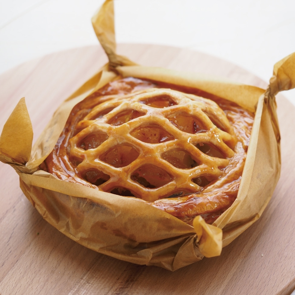 希少な”グラニースミス”という品種の青リンゴを贅沢に使用したアップルパイ。自家製カスタードクリームと煮りんごの相性が抜群で、網目状のパイ生地が食感のアクセントになっているのが特徴です。お酒やシナモンを使用していないので、お子様にも安心してお召し上がりいただけます。