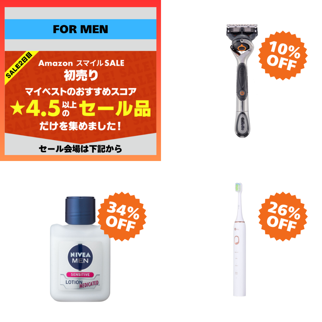 おすすめスコア★4.5以上のセール品【男性向け】favlistおトク発信部1枚目・ジレット フュージョン プログライド(P&G)2680円・ニベアメン センシティブローション(花王)797円・infly PT02(MIRISE)3980円2枚目・5000mAhモバイルバッテリー(RORRY)4179円・Evolve PRO Touch(テクタイト)28875円・ワンタッチスマホホルダー(ペルシード)1840円・Air Pro 4(EarFun)8190円…もっと見る