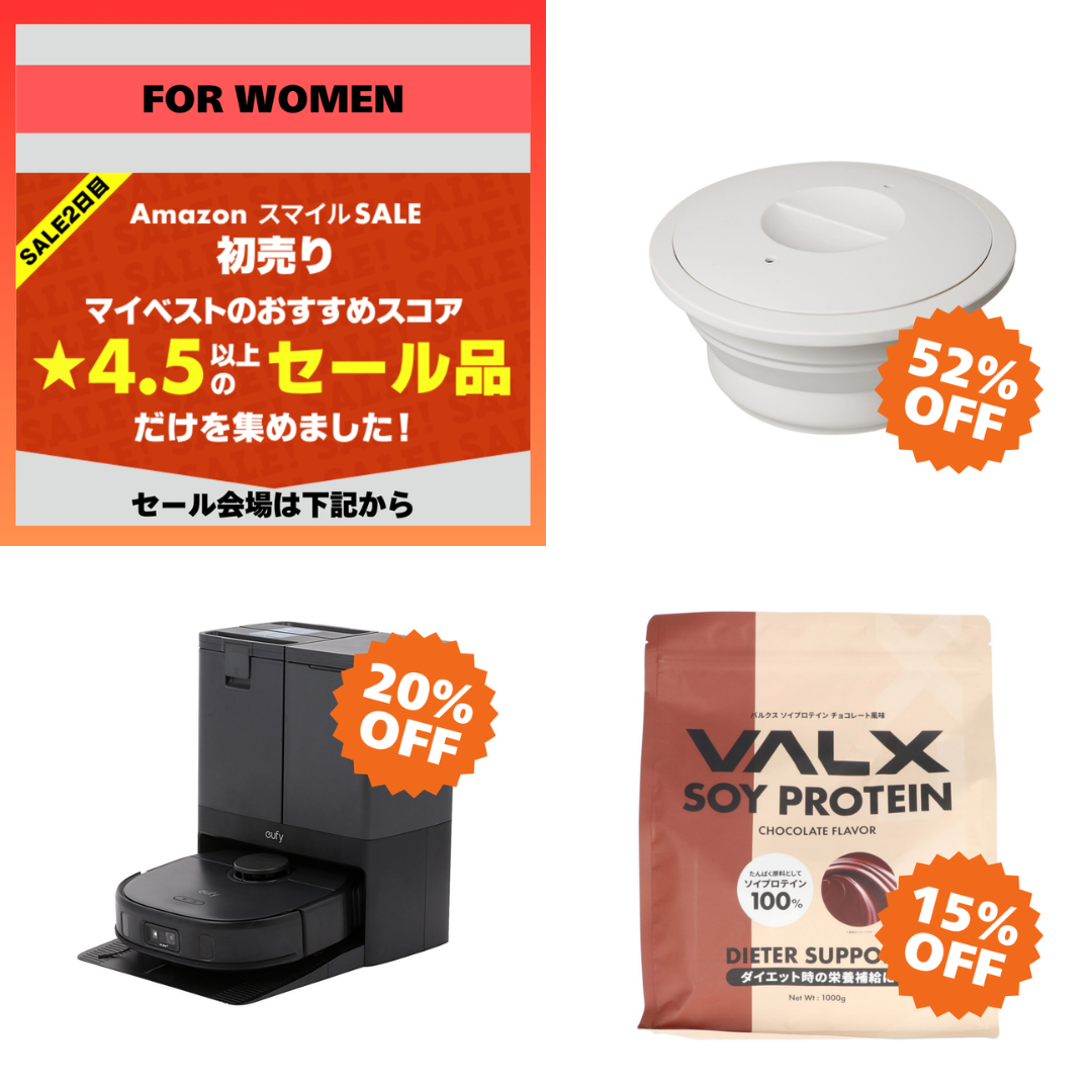 おすすめスコア★4.5以上のセール品【女性向け】favlistおトク発信部1枚目・マジカリーノ 丸型シリコーンスチーマー(和平フレイズ)2008円・X10 Pro Omni(Anker)79990円・バルクス ソイプロテイン チョコレート風味レバレッジ(レバレッジ)3402円2枚目・メイクブラシセット(EDTRE)2065円・VT CICAクリーム(VT COSMETICS JAPAN)2205円・プレミアムアイ&ラッシュセラム(美人製造研究所)6160円・エクスプローラ12色アイシャドウパレット(Perfect Diary)3350円…もっと見る