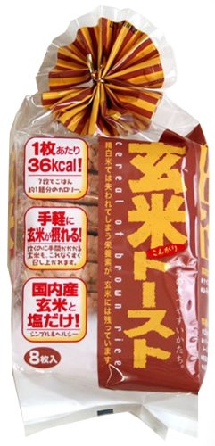 出典:amazon.co.jp蔵王米菓 玄米トースト2,592円青木祐子とっても便利な栄養たっぷりの国内産玄米で作られた玄米トーストです。トーストと言ってもソフトな雷おこしのような製法で、フリーズドライ。そのまま食べても美味しいのですが、熱湯で戻せば玄米粥がすぐできます。8枚入りで1枚ずつの袋入り。1枚あたり36キロカロリーなので、7枚でご飯約1杯分です。熱湯で戻すとちょうど、お茶漬けのあられがふやけて膨らむような感じとなり、梅干しなどチョンと入れたら軽くてヘルシー、でも栄養のある優しい玄米粥になります。柔らかく歯がいりません(笑)ですので、体調不良で食欲のないとき、また小さなお子様やご年配の方にも優しく、非常に便利な玄米トーストです。軽いし、私は非常食にもよいのでは…と思っています。おすすめです。…もっと見る
