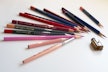 使いやすい色が多いので幅広い絵柄に対応できます。芯が固く、細かい絵を描くのに向いていますが、ノリが悪く時間が経つと退色しやすくなります。