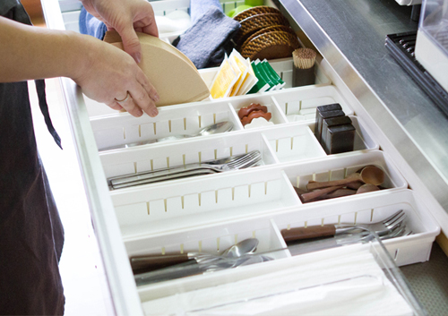 ワイドには仕切りが1枚、スリムには2枚ついていて、ネットでなら仕切り板単品でも購入可能なのがポイントです。細かく仕分けたいカトラリーや、お弁当グッズのカップやバラン、コースターや箸置きなど、収納したいもののサイズに合わせて仕切りが調節できるので、とても使いやすいです。