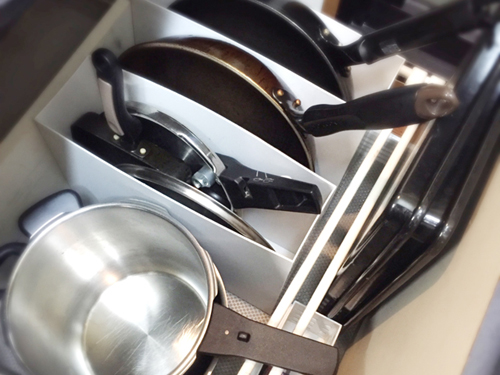 こちらのキッチントレーは、ほとんどのご家庭のシステムキッチンや、食器棚の浅い引出しに使用することができます。ワイドとスリムを組み合わせることで、ピッタリなサイズに近づけて設置できるのが魅力。