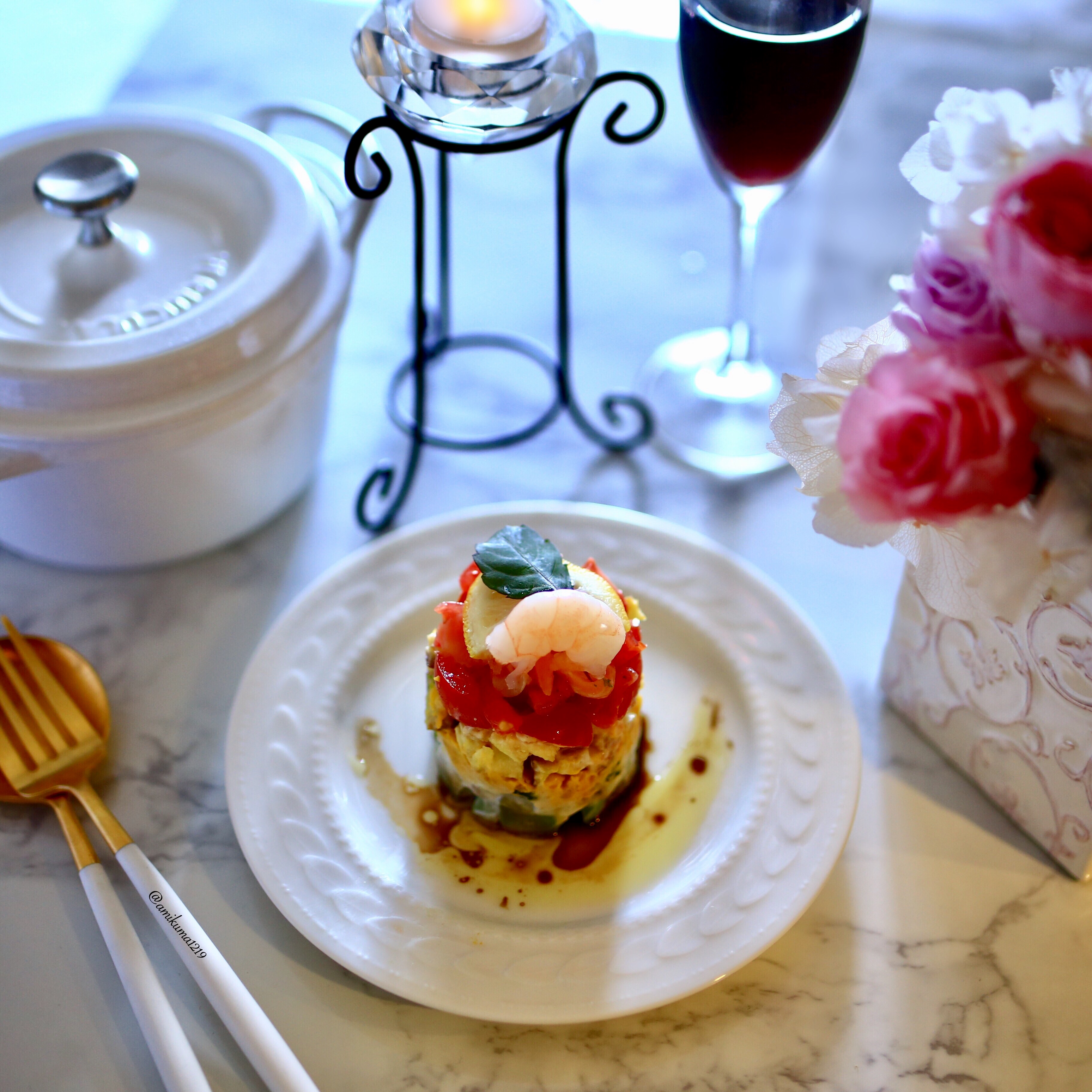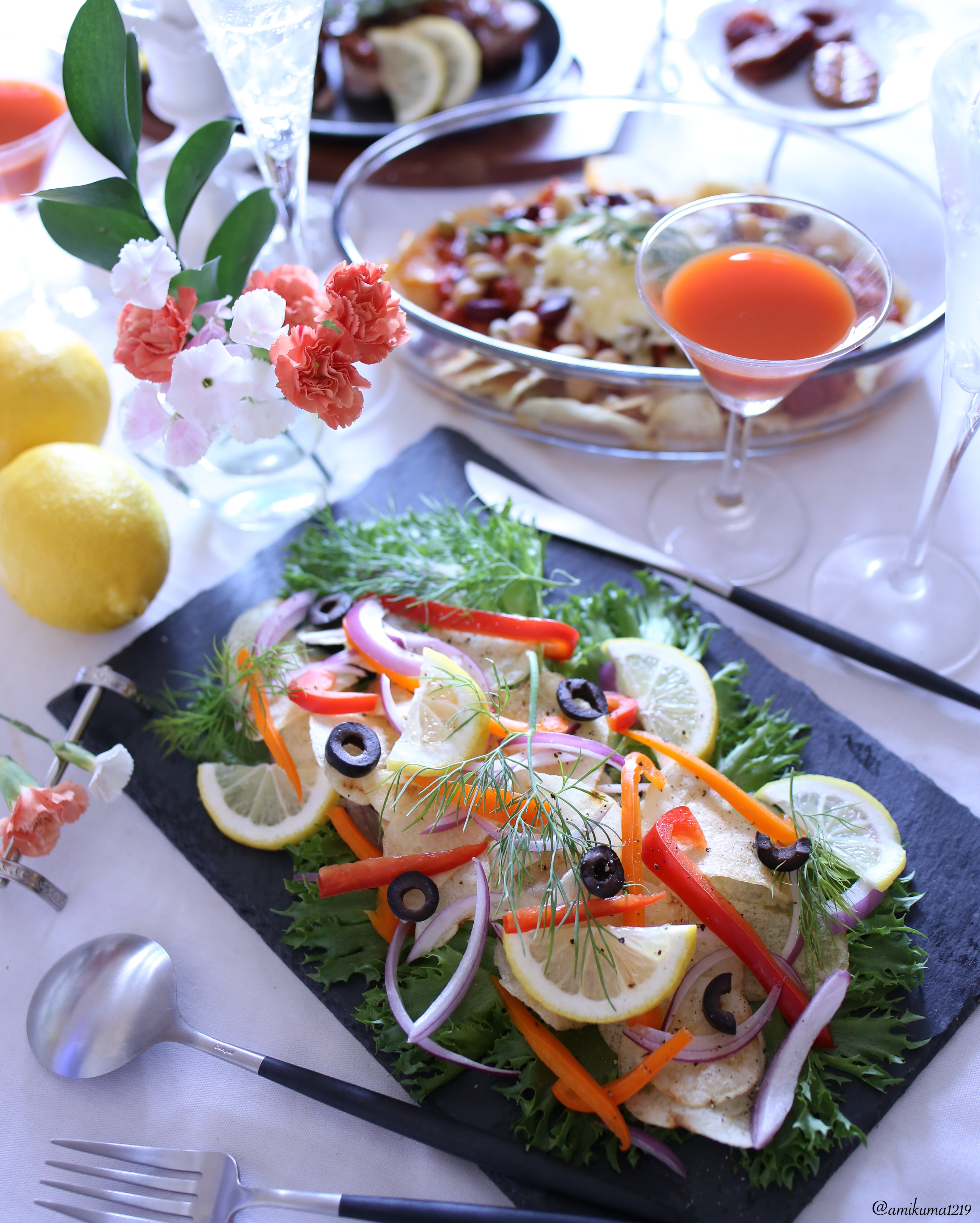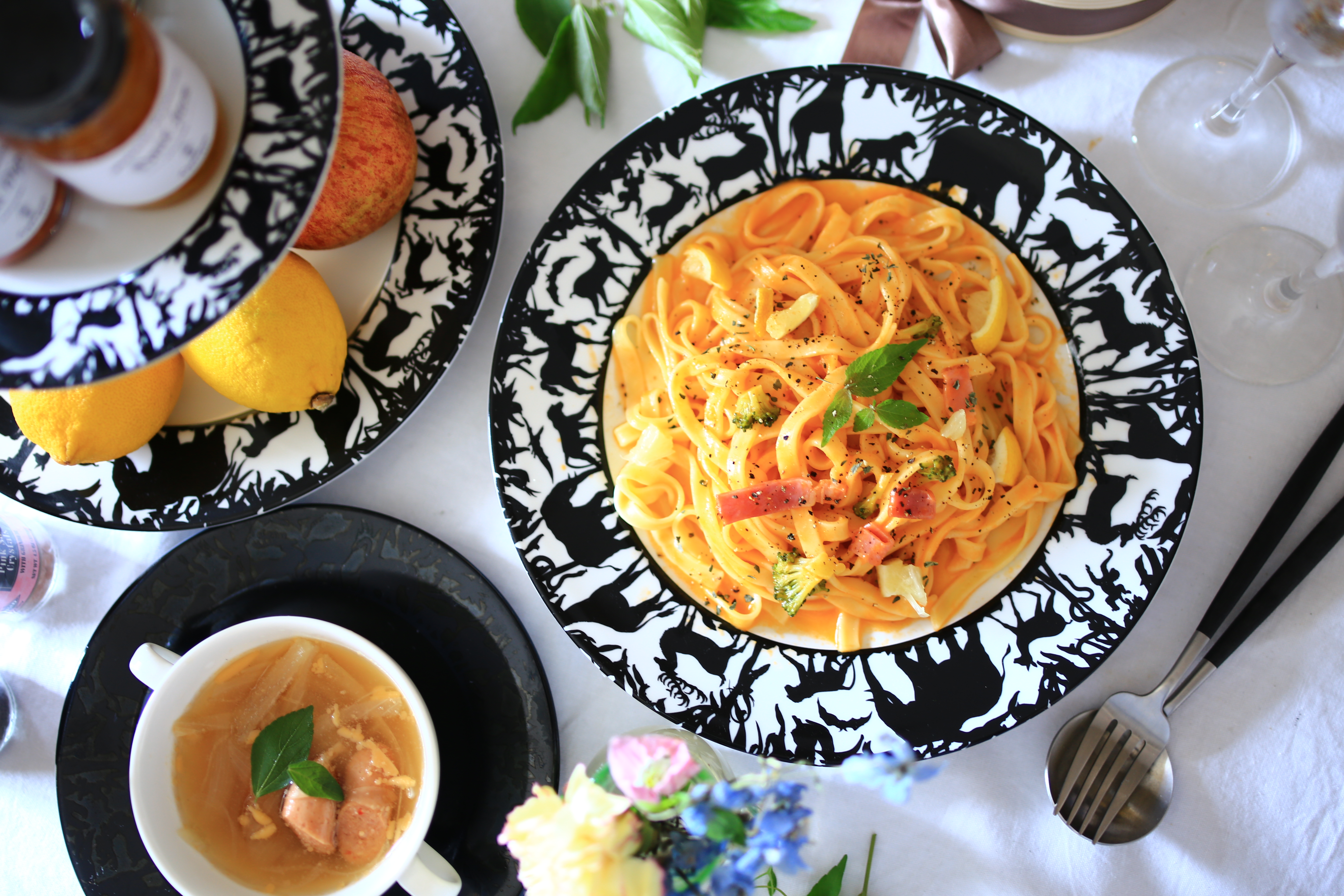 どんなお料理もおしゃれに盛り付けられるモノクロのプレート。写真はパンケーキをのせたクリスマスのコーディネートです。