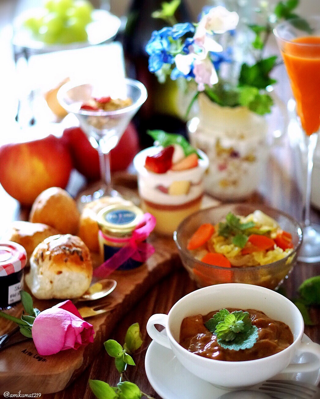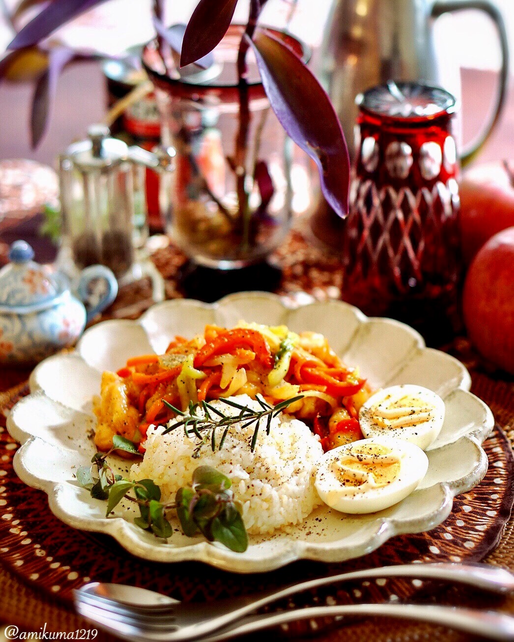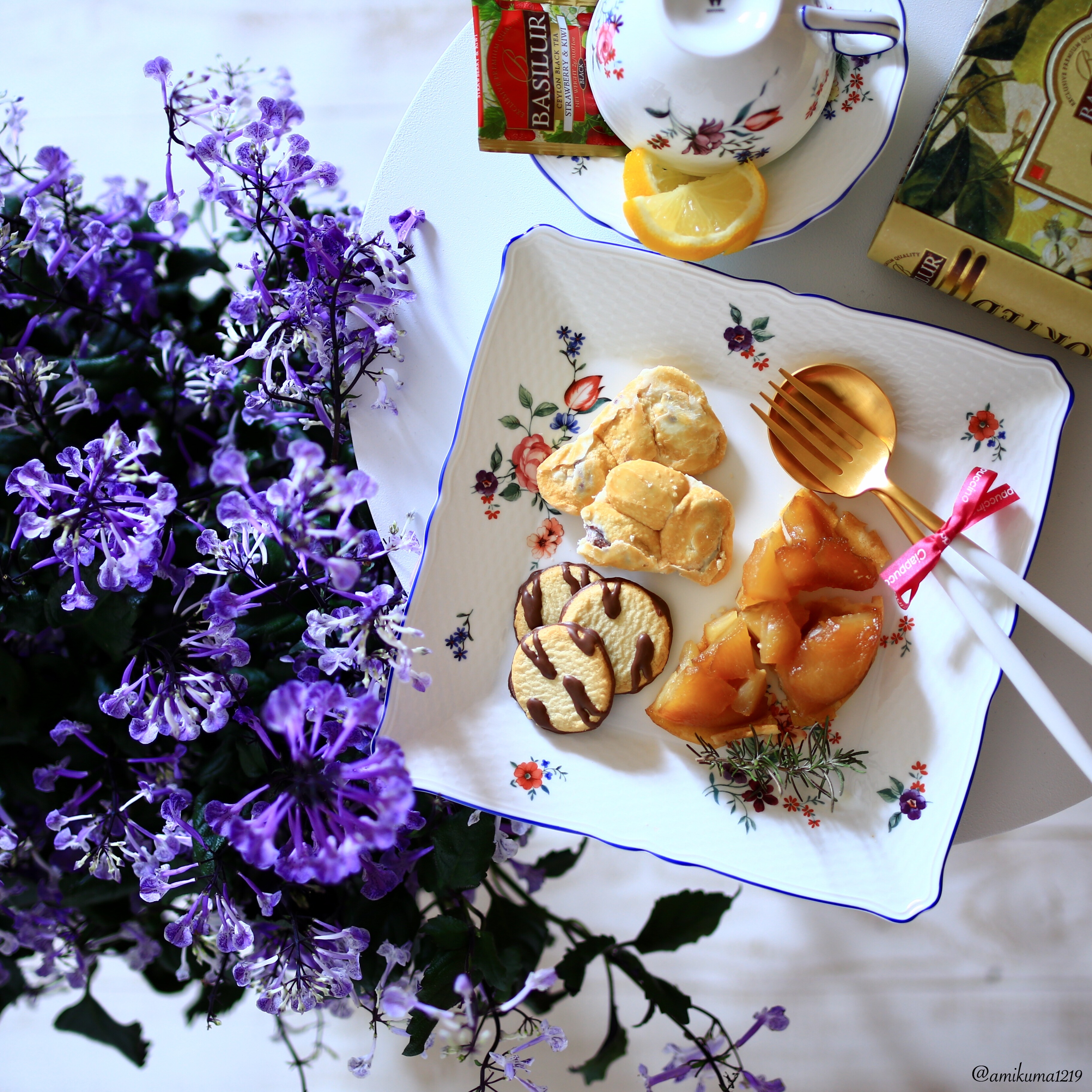 どんなお料理もおしゃれに盛り付けられるモノクロのプレート。写真はパンケーキをのせたクリスマスのコーディネートです。