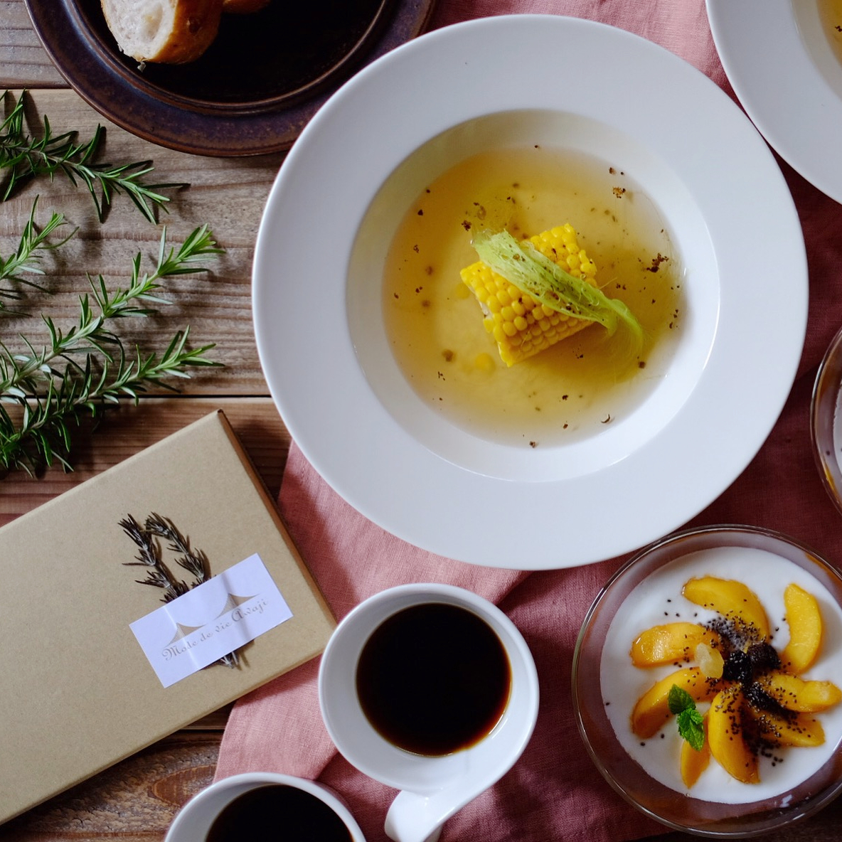 コンランショップで一目惚れしたプレートです。地球のような美しい深ターコイズブルーで光の加減でキラキラとラメのような輝きをしています。そして、ざらっとした手触りはまさに信楽焼ならではのものです。