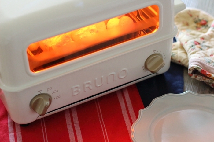出典:pokapokabiyori.net出典:pokapokabiyori.net出典:idea-onlineshop.jp出典:idea-onlineshop.jp出典:idea-onlineshop.jp出典:idea-onlineshop.jp出典:idea-onlineshop.jp出典:idea-onlineshop.jp出典:idea-onlineshop.jpBRUNOトースターグリル12,960円ぽかぽかびより小春コンパクトホットプレートで有名なBRUNOが2017年秋冬に出した最新型の調理家電です。グリルとトースターが合体したもので、上半分が大きく開くため、食材の出し入れも楽ちんです。 ヒーターは上のみ、下のみ、両面の3パターンに調整可能。窓も大きく中が見えやすいので、「上の方の焼き色が少し濃いな」と思ったら、その場で下のみに切り替えるなど、様子をみながら簡単に調節できます。食卓に置いても邪魔にならないコンパクトなサイズなので、食材を準備して、テーブルを囲みながらライブ料理が楽しめます。バーベキューなどの串は、少々はみ出ていても調理可能です!夜だけでなく忙しい朝にもぴったり。パンと同時に、卵を割り入れたココットや、グラタン皿にのせた野菜やソーセージを焼くこともできます。一定の温度まで上がるとスイッチが切れるサーモスタット機能付きで、足をひっかけても外れるようなマグネットタイプのコードなので、小さいお子様がいる家庭でも安心して使えます。下のトレイに水を張っておけば汚れも落としやすく、焼き網も外せるので後片づけも簡単ですよ。…もっと見る