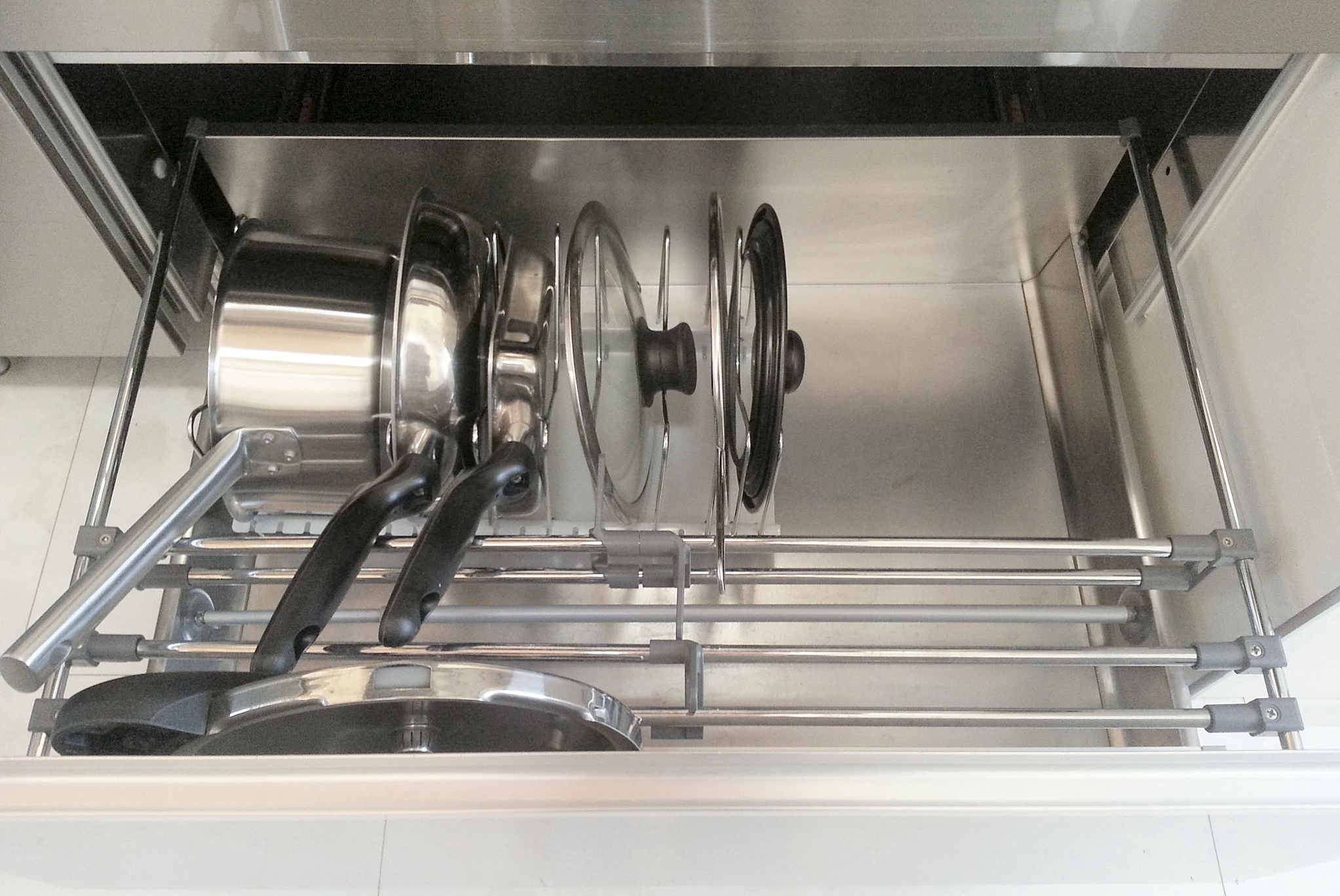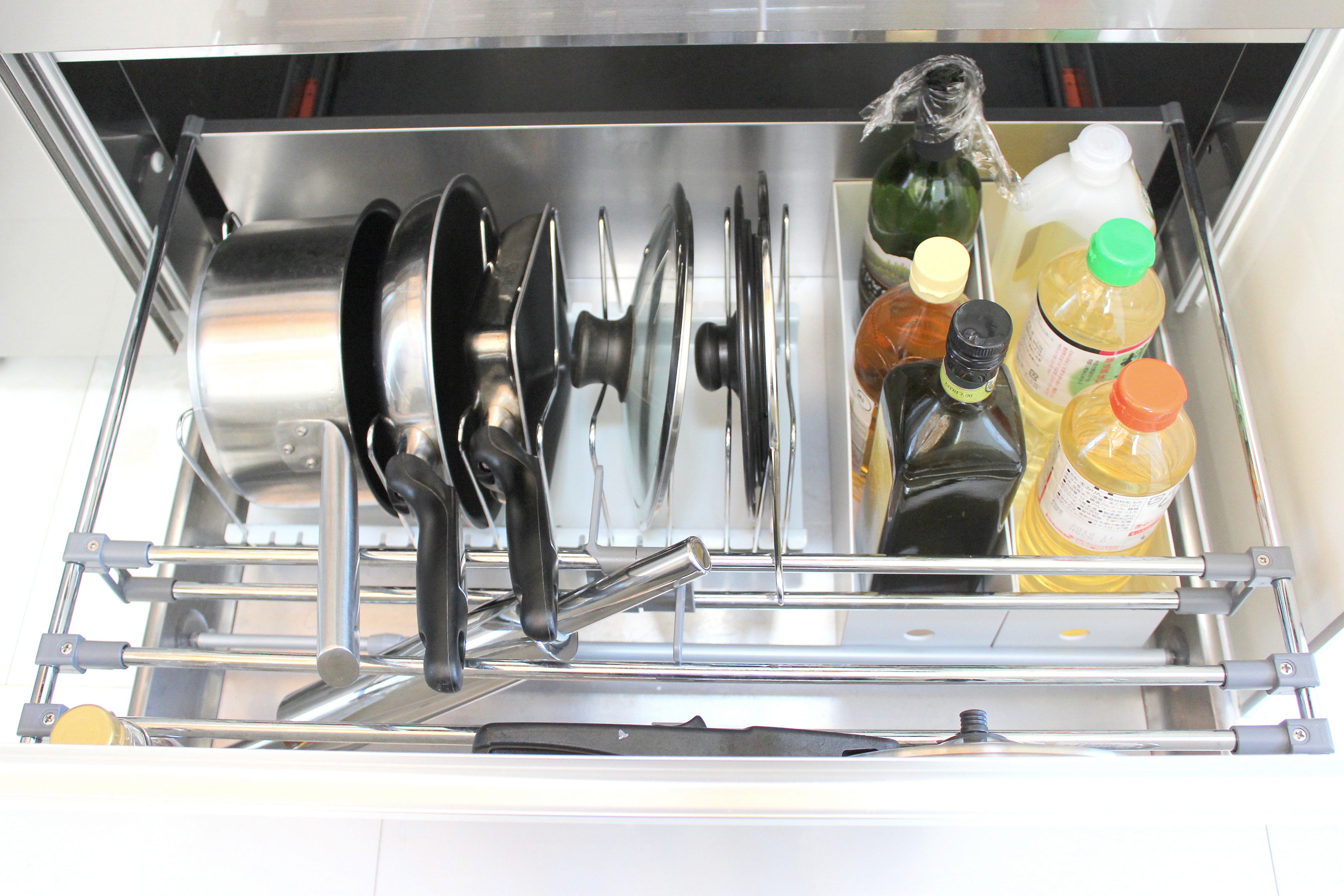 出典:amazon.co.jp伸晃フライパン 鍋 ふた スタンド2,167円大塚奈緒引き出し収納の場合、鍋やフライパンは立てて収納した方が出し入れしやすい!そんな立てる収納に便利なスタンドです。伸縮タイプなので、鍋の数に応じて最適なサイズに調整可能。ウチでもお鍋が多かった頃は、引き出しの幅いっぱいいっぱいに伸ばして使っていましたが、鍋を断捨離した現在は幅を狭めて使っています。スタンドのワイヤーがM字になっているのも特徴の一つ。蓋のつまみが丁度M字のくぼみに引っ掛かってくれるので、蓋の収納にもとても便利。さらに、鍋の高さに合わせて2㎝感覚で幅を調節できるので、ムダなスペースができにくいところもおすすめポイントです。…もっと見る