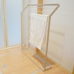 スチール製で適度な重さがあるので安定していて、またタオルハンガー部が傾斜しているから、奥に掛けたタオルも取りやすい。温かみのある落ち着いた色合いやマットな質感など、細部にもこだわってデザインされたインテリア性の高いタオルスタンドです。
