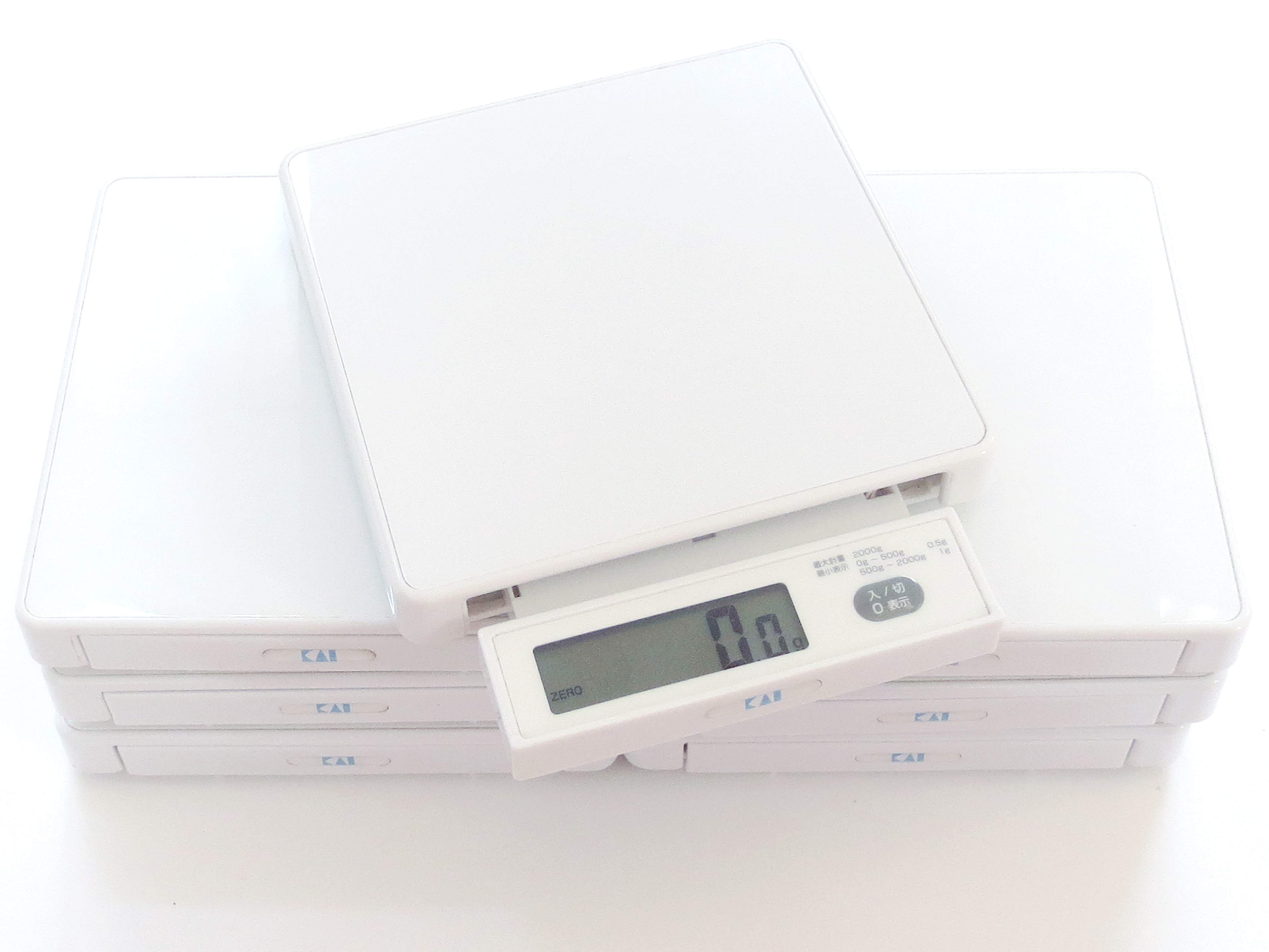 出典:amazon.co.jp貝印コンパクトデジタルキッチン用スケール 2kg DL9011巻真美海外でのデモンストレーションに同業の先輩が持参していて、荷物をコンパクトにするこの薄さと小ささにひかれ、私もまとめ購入しました。真四角・真っ白・平らでシンプルな形、デジタル表示部分が本体に収納でき、とてもコンパクトになります。1g単位で測れて風袋引き(0g表示にリセット)にも対応している実力商品。シンプルな構造のため拭き消毒もしやすく、いつも清潔に保つことができます。写真の私物は旧型ですが、現行品はスライド部分が進化してより使いやすくなっています。おすすめです!