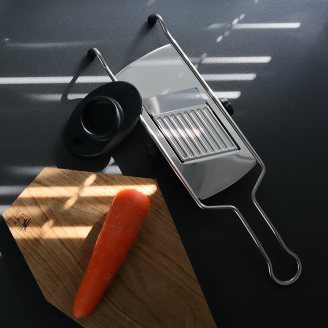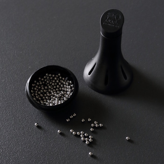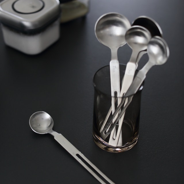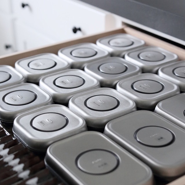 ずっしりと重さがあって安定感もあり、これがキッチンのワークトップに出ているだけでちょっとこなれた雰囲気になります。刃が収まる部分は底まで貫通しているため、通気性もよく、ゴミや埃が溜まり続けることもありません。時々ドライヤーなどで風を当ててあげると、スッキリします。