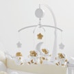 こちらのメリーを一目見て感激しました!インテリアの一部のようなシンプルさと布製の優しい雰囲気が他にないデザインです。