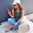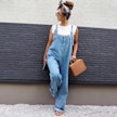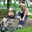 ハイウエストなので、立ったりしゃがんだり、子どもを追いかけたりをするママにはもってこいです。シンプルにTシャツに合わせるだけで、おしゃれに”こなれ感”を演出できます。ワンピースに合わせると、ユルズルな感じでおしゃれ上級者の着こなしに!