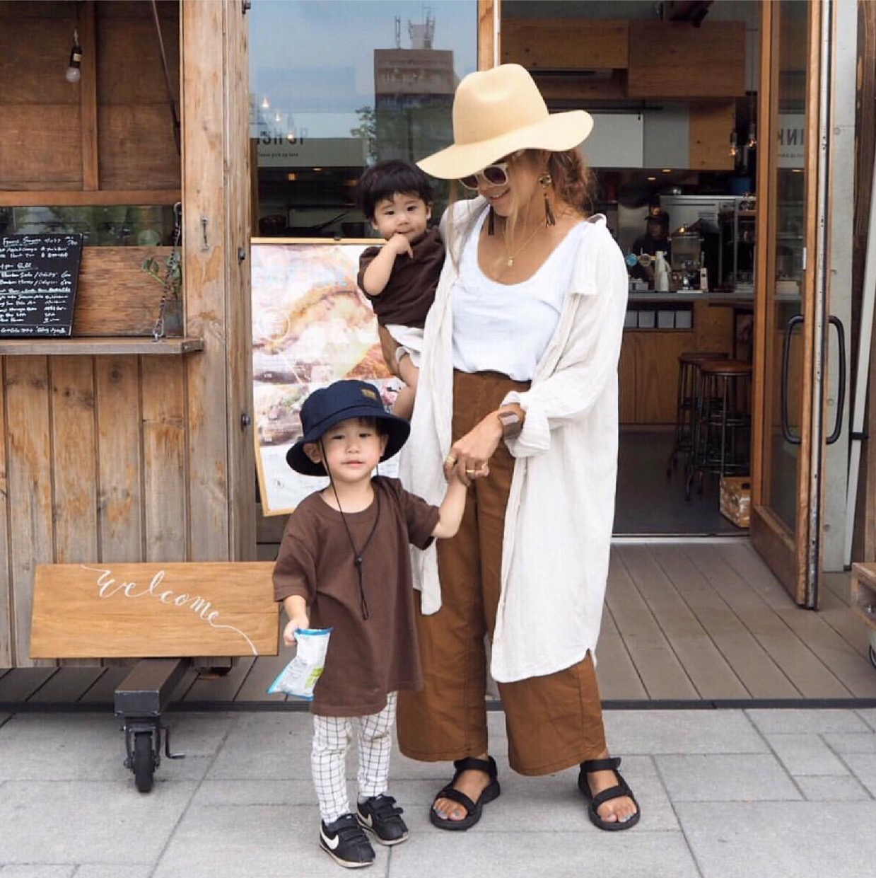 すぐにサイズアウトしてしまう子どものお洋服はプチプラのものを。子ども用の帽子は3COINSで買いました。特に帽子などの小物はリンクコーデにはもってこいのアイテムなので、100円ショップのものなどもよく利用しています。