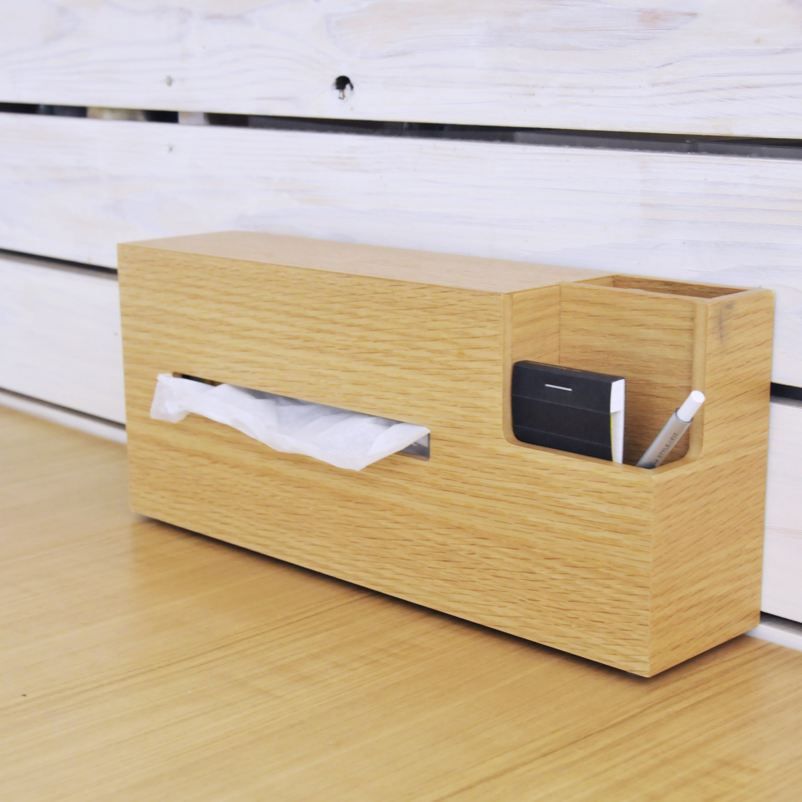 立てて置けるスタイリッシュな木製ティッシュケース。