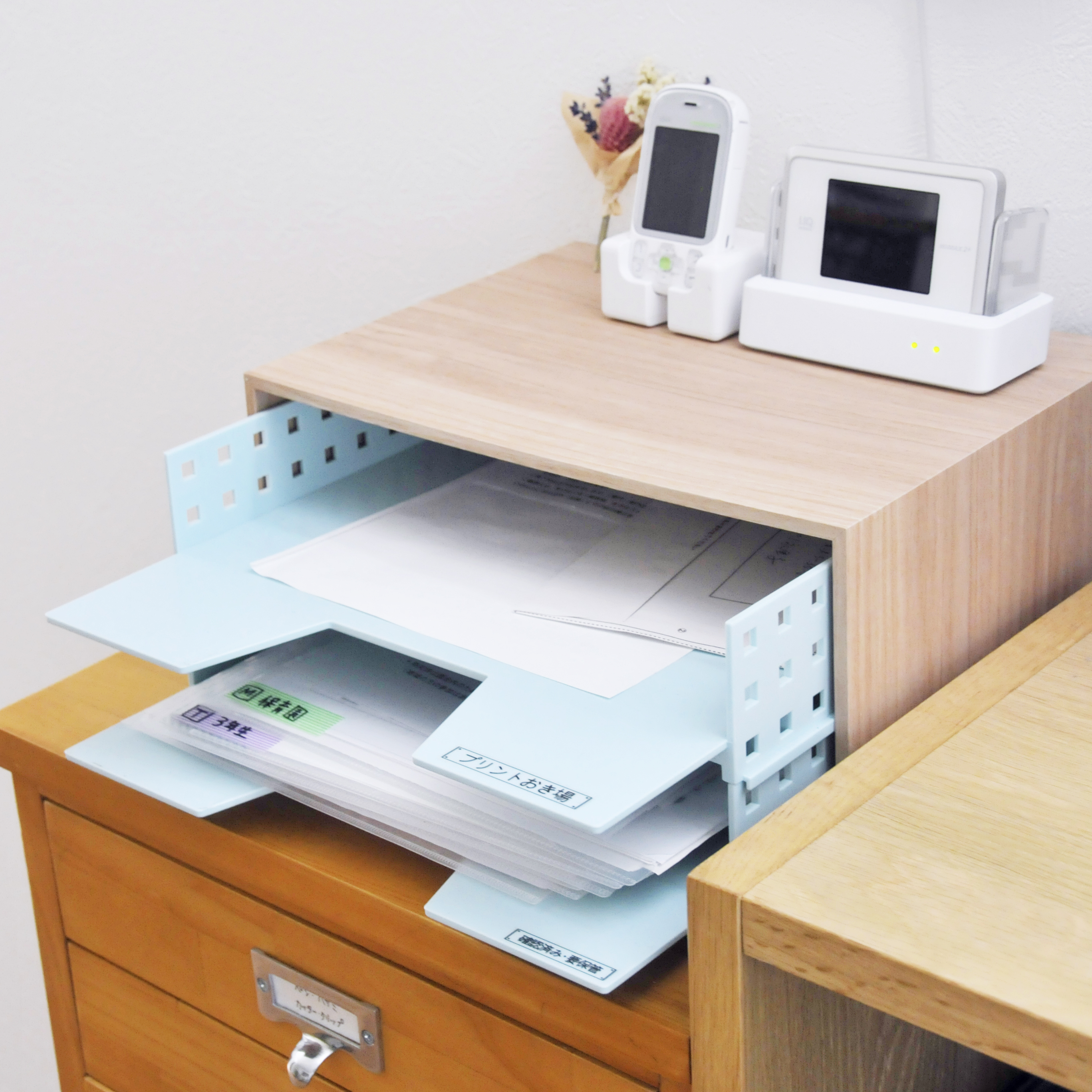 わが家のティッシュは、私が家の中で1番いる時間の長いダイニングテーブルの上が定位置。小物が入れられるスペースがついているので、保育園のノートを書くためのボールペン&体温計・宿題の丸つけをする赤ペン&ハンコ・スマートフォンケースにはさめるカードサイズのメモ帳の収納にも活躍しています。