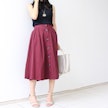 鮮やかなチェック柄が印象的なスカートは、秋にも着られる配色です♪グリーンやパープルなど新鮮な色使いが特徴で、コーデの主役になる華やかなスカート。程よいフレアが女性らしい見た目に!膝下丈でアラサーにも履きやすいシルエットです。