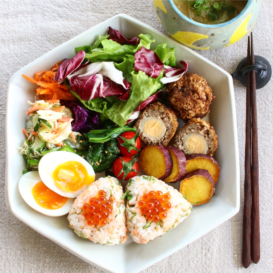 パープル以外にも、ブラックやイエローも展開されています。当初はブラックをメインに集めていましたが、パープルが出たときに「これはかわいい!」と思い、パープルも集め始めました。ブラックと異なり色味があるので、お料理を選ぶかなと思いましたが、意外となんでも合いますよ。